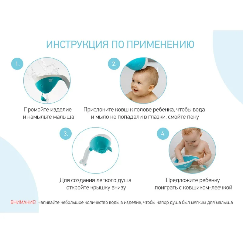 Luând apă de mai multe ori, puteți spăla cu ușurință spuma de pe corpul și capul bebelușului.