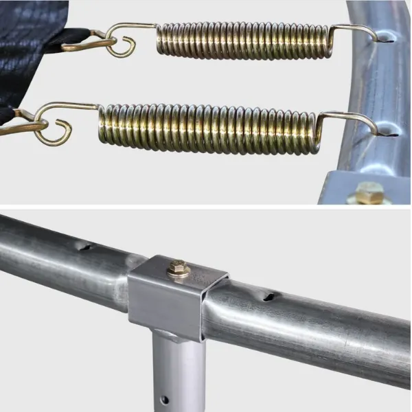 Cadrele metalice solide asigură susținerea și stabilitatea în timpul săriturilor, iar plasa de protecție previne căderile și asigură siguranța copiilor în timpul jocului.