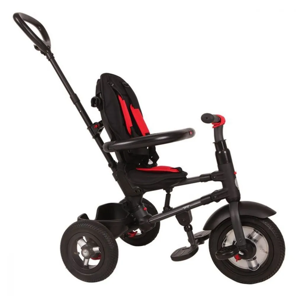 Viata moderna ne invata sa fim practici, iar parintii trebuie sa se adapteze cerintelor vietii urbane.Tricicleta QPlay Rito este solutia ideala pentru viata alaturi de bebe. Compacta si usor de utilizat, Rito ofera o experienta deosebita in timpul plimbarilor in parc sau prin oras.Tricicleta multifunctionala Rito poate fi folosita de la 12 luni la 3 ani. Design-ul deosebit ofera micutilor plimbari sigure si confortabile, iar sistemul de pliere compact o transforma in tricicleta ideala.Confortul copilului este asigurat de husa moale care imbraca sezutul si spatarul. Spatarul tricicletei se inclina pentru a-i oferi micutului o pozitie confortabila in timpul somnului. Siguranta copilului este oferita de centurile de siguranta in 5 puncte si de bara de protectie ce nu ii vor permite acestuia sa cada din tricicleta in timpul deplasarii.Cadrul este fabricat dintr-un metal usor pentru o manevrabilitate facila iar culoarea negru mat va scoate in evidenta designul modern al tricicletei.Copertina il va proteja de soare, vant sau praf. Este dotata cu plasa in partea din spate pentru a permite aerisirea si supraveghere copilului.Tricicleta Rito este echipata cu roti din cauciuc plin (foarte utile pentru orice tip de teren, in special in cazul suprafetii de rulare denivelate), frana si aparatoare de noroi. Tija de directie ii permite parintelui sa dirijeze tricicleta cu o singura mana.
