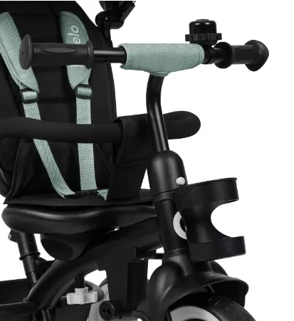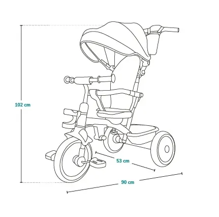 Mânerul ajustabil, care poate fi reglat între 82 și 100 cm, se adaptează la înălțimea îngrijitorului, asigurând o utilizare confortabilă. Sistemul de direcție din mâner permite părinților să controleze complet direcția tricicletei, în timp ce frânele separate pe roțile din spate permit blocarea vehiculului atunci când este staționar.