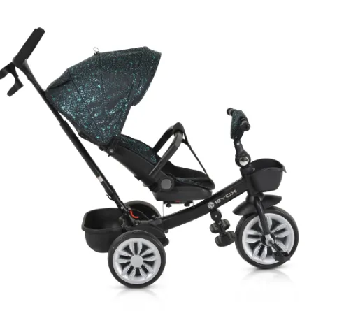 Funcții: Ghidon pliabil, Spătar reglabil, Scaun rotativ la 360°, Mâner detașabil, Poate fi folosită și ca bicicletă cu 3 roți
