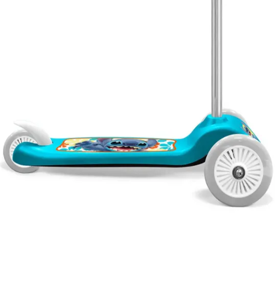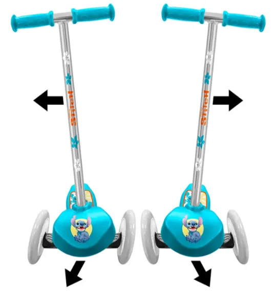Trotineta STITCH cu 3 roți este alegerea perfectă pentru micii exploratori activi! Designul său stabil cu trei roți și platforma antiderapantă asigură fiabilitate și confort la fiecare plimbare. Rulmenții ABEC 5 și frâna de picior din spate fac ca direcția să fie lină și sigură, în timp ce mânerele anti-compresie adaugă un plus de confort. Datorită roților din față care urmează înclinarea ghidonului, trotineta este ușor de manevrat, asigurând copiilor plimbări active.