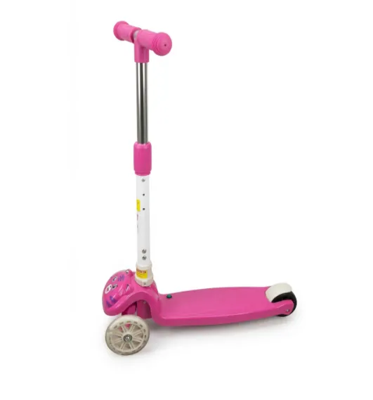 Trotinetă pentru copii cu 3 roți, pliabilă, cu roți luminoase, roz, cod 990125