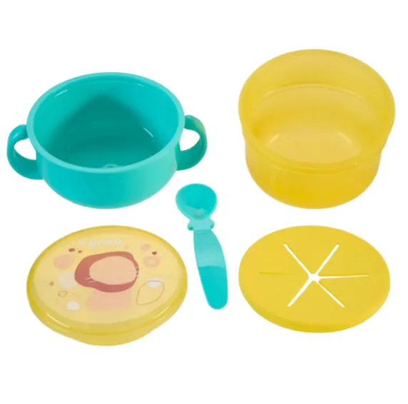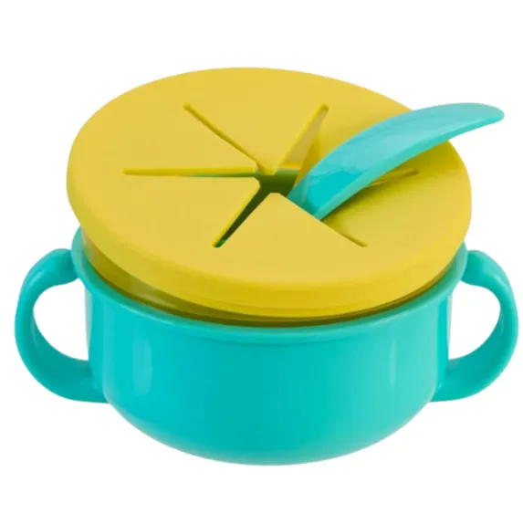 Bolul pentru gustări este ușor de utilizat de către cei mici, datorită orificiului în formă de stea, care le permite copiilor să mănânce singuri, fără riscul de a vărsa mâncarea. Bolul este prevăzut cu mânere pentru o prindere mai facilă, capac pentru protecția alimentelor și include o linguriță.