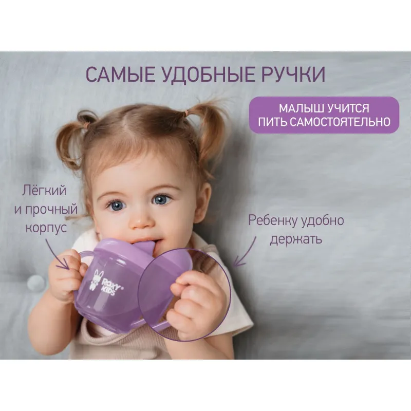 Cana de antrenament cu gura de scurgere ROXY-KIDS va ajuta bebelusul sa invete sa bea independent si sa se obisnuiasca sa foloseasca o cana obisnuita.