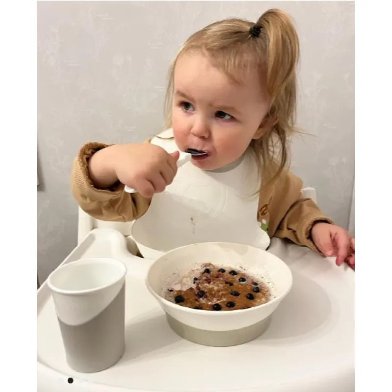 După ce bebelușul termină de mâncat, folosește capacul inclus pe farfurie pentru a păstra resturile din frigider – o modalitate ușoară de a reduce risipa de alimente!