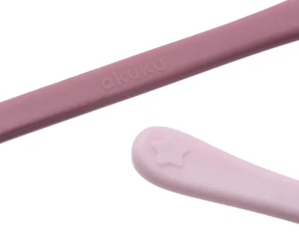 Lingurița pentru prima hrănire de la AKUKU este puțin adâncă, îngustă și fermă, ceea ce o face ideală pentru începutul diversificării alimentației. Mânerul lung și confortabil permite părinților să ia cu ușurință mâncarea din borcan și să hrănească copilul. Lingurița are o formă unică, asemănătoare cu o spatulă logopedică, ceea ce facilitează copilului să ia mâncarea de pe ea.