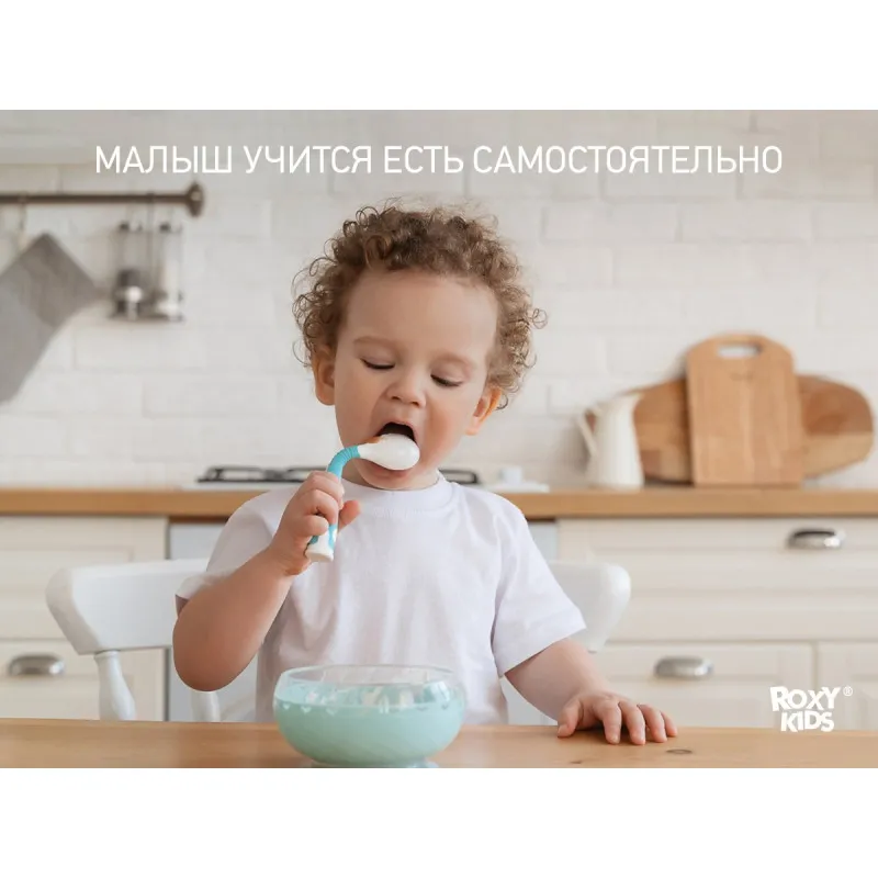 Pe măsură ce cresc, mânerele ustensilelor pot fi îndreptate pentru a-l învăța pe copil cum să țină corect lingura lui preferată.