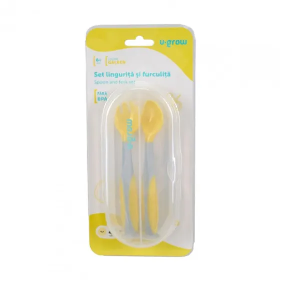 Set tacamuri compus din lingurita si furculita recomandat copiilor peste 6 luni.