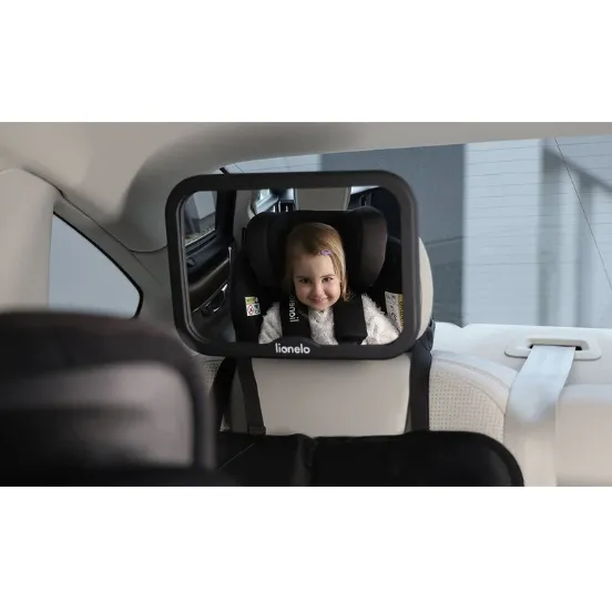Автомобильное зеркало Lionelo Black Carbon легко крепится на подголовник в любом автомобиле.