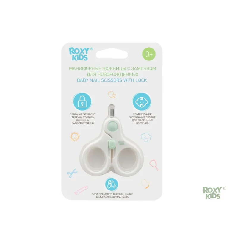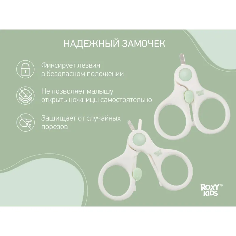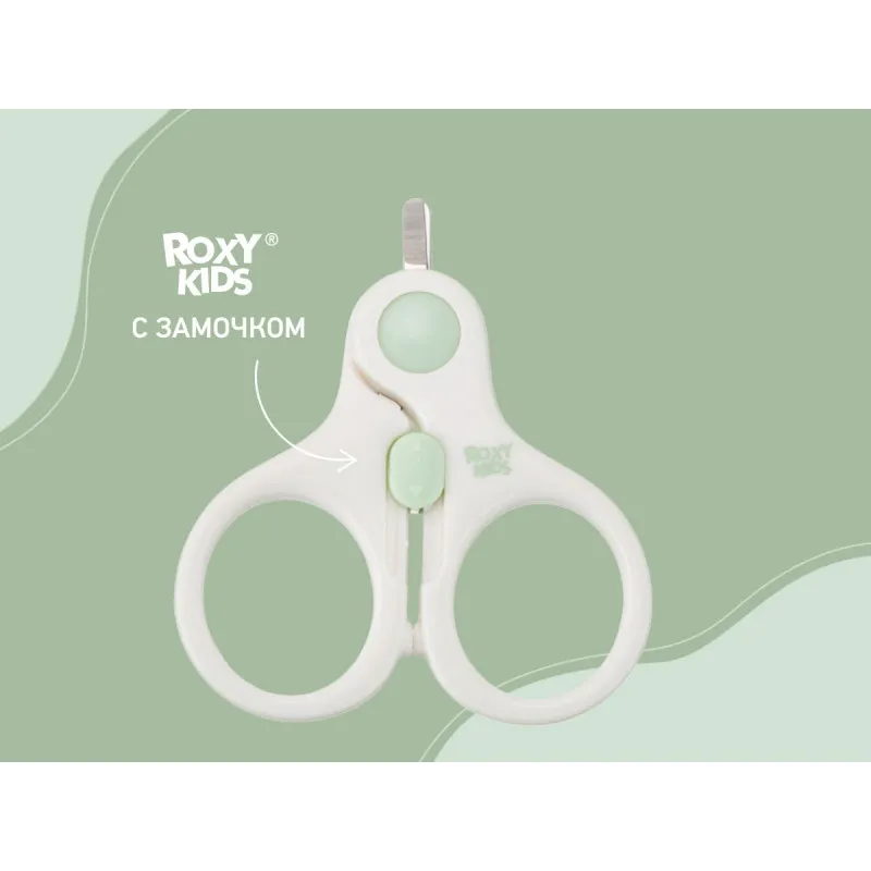 Детские ножницы для ногтей Roxy Kids с замком, Мятный (RPS-001)