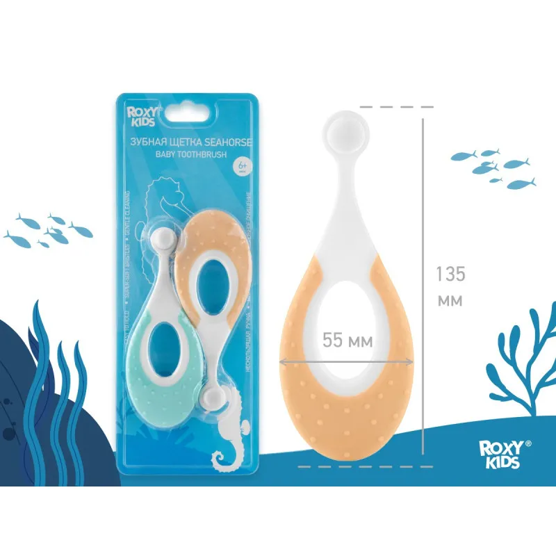 Зубные щетки SEAHORSE от ROXY-KIDS с ультрамягкой щетиной предназначены для комфортного и безопасного ухода за первыми зубками и полостью рта малыша.