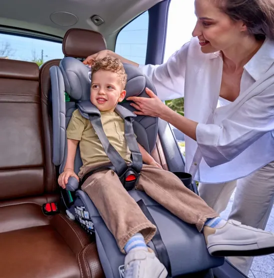 Сиденье широкое и удобное, а подголовник имеет целых 15 уровней регулировки, благодаря чему даже детям постарше комфортно. Родитель может одним движением отрегулировать ремни и подголовник в соответствии с текущими потребностями ребенка.