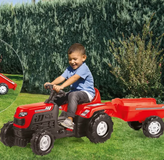Этот педальный трактор позволяет ребенку передвигаться самостоятельно, способствуя развитию координации и мышечной силы естественным и увлекательным способом.