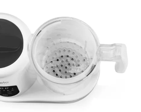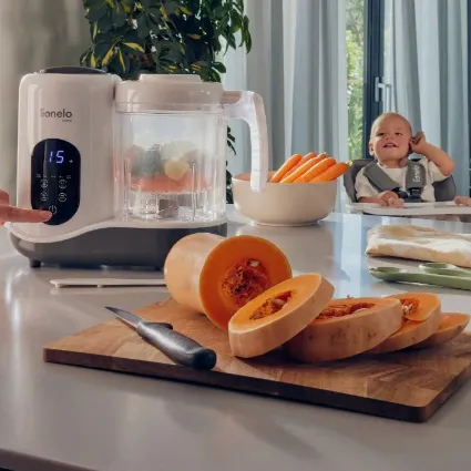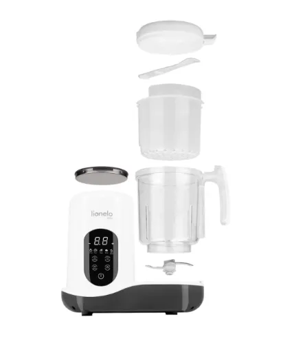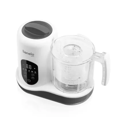 Lionelo BabyMenu — современное устройство, предлагающее функции приготовления на пару, смешивания, размораживания, нагрева и стерилизации, позволяющее приготовить полезную еду за короткое время. Нашим приоритетом является поддержка родителей в формировании привычек здорового питания – благодаря возможностям BabyMenu воспитатели могут легко и быстро создать здоровую и разнообразную еду, независимо от условий. С его помощью родитель может не только нагреть молоко или банку, но и приготовить на пару овощи, фрукты, рыбу или мясо и даже ошпарить еду. Таким образом, расширение рациона малыша становится намного проще, а приготовление еды происходит в гигиенических условиях. Устройство имеет встроенный нагреватель, который позволяет не только быстро нагреть, но и разморозить молоко или банку. Между тем, функции приготовления на пару и смешивания значительно упрощают приготовление здоровых блюд с нуля. Все, что вам нужно сделать, это налить воду в резервуар, положить продукты в специальную корзину, а затем активировать функцию приготовления на пару, просто нажав кнопку. Достаньте готовые ингредиенты прилагающимися щипцами и перемешайте их благодаря лезвиям у основания. Чашка, изготовленная из тритана, не только безопасна, но и долговечна. В то же время возможность вручную или автоматически устанавливать время смешивания, приготовления на пару или нагрева позволяет настроить конфигурацию устройства в соответствии с вашими потребностями. Объединив до пяти функций, родитель может быстро и легко составить для ребенка полезную еду, регулируя размер и консистенцию порции в соответствии с текущими потребностями.