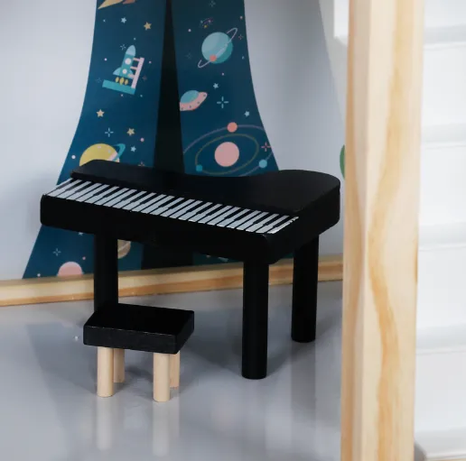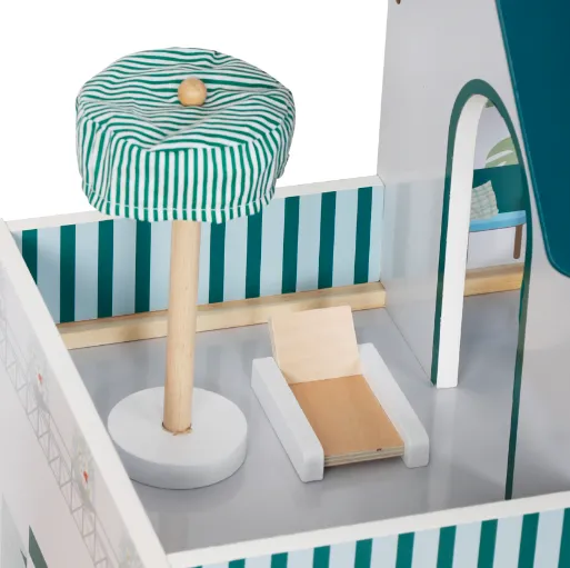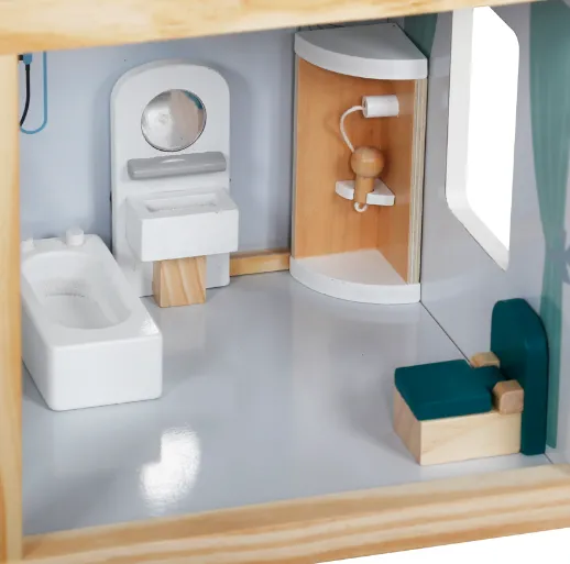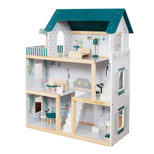Кукольный домик из дерева — модель W06A413G (61,3 × 26,4 × 77,4 см, цвет — туркоаз / нейтральный / серый‑тонированный)