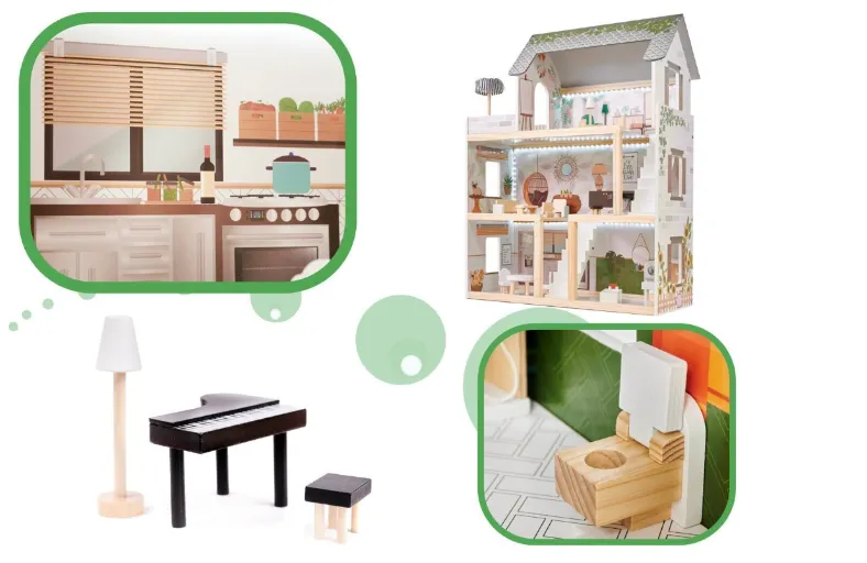 Назначение: домик‑игрушка для кукол, подходит для сюжетно‑ролевых игр, расстановки мини‑мебели и аксессуаров.