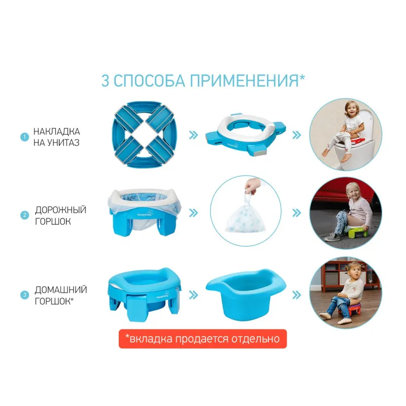 Дорожный горшок для детей HandyPotty поможет обеспечить дополнительный комфорт в путешествиях с маленькими детьми.