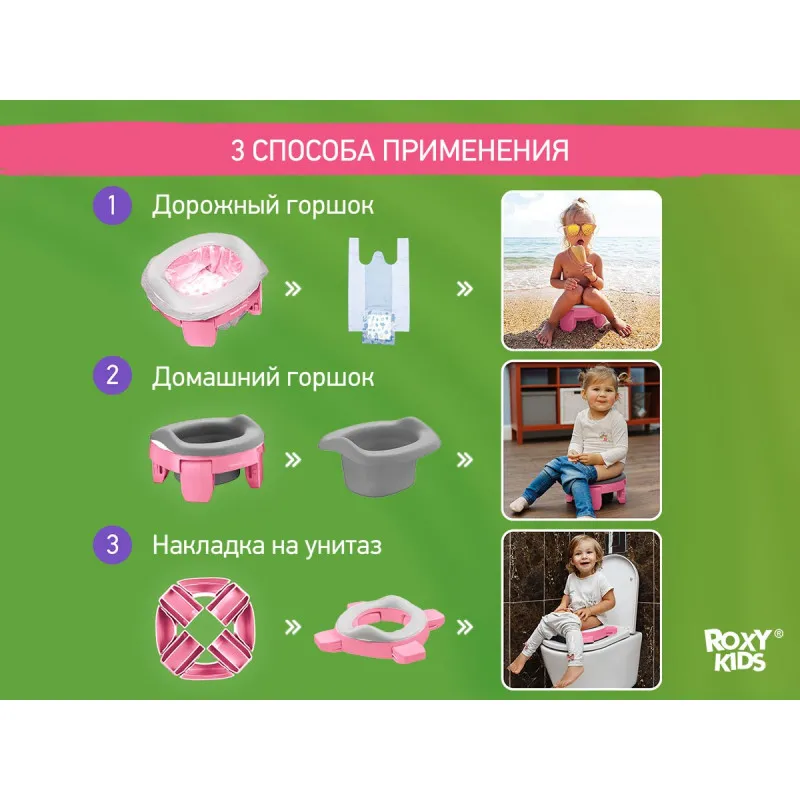 Дорожный горшок Roxy Kids HandyPotty 3в1 (HP-255E) Розовый+Фиолетовый
