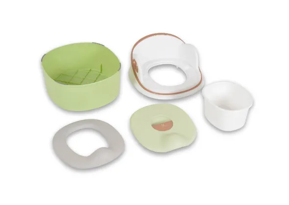 Может использоваться как классический горшок, мягкий адаптер для унитаза или подставка для ванной.