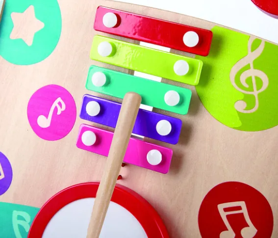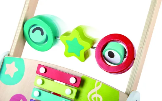 Развитие навыков: Ходунки оснащены музыкальными инструментами, такими как ксилофон, барабан и вращающиеся блоки, которые стимулируют координацию рук и глаз, а также сенсорное развитие.