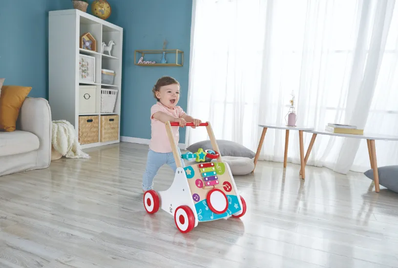 Помогите вашему малышу сделать первые шаги с музыкальными ходунками от Hape! Эта игрушка сочетает в себе веселую музыку и обучение ходьбе, делая процесс увлекательным и развивающим.