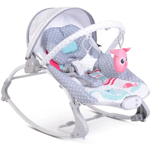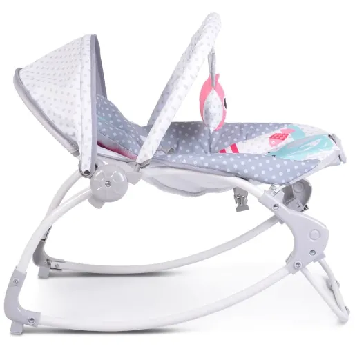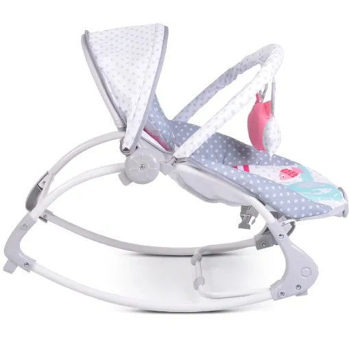Есть 3 положения для регулировки спинки, в зависимости от возраста ребенка. Исключительно легкая и компактная складная металлическая рама. К детскому шезлонгу прилагается дуга с 3 веселыми игрушками, которые будут развлекать вашего малыша в любое время.