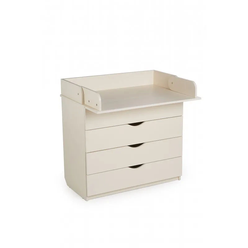 Верхняя часть комода легко откидывается и превращается в удобный пеленальный столик. А закругленные боковые бортики позволят безопасно провести переодевания Вашего малыша. Модель представлена в двух цветах: белый и ванильный.