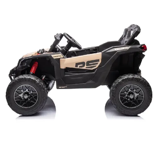 Это детский электромобиль Can Am Maverick RS — компактный и мощный багги для активного отдыха детей. Модель выполнена в современном дизайне с акцентами черного, красного и бежевого цветов. Оснащён большими колесами с глубоким протектором для отличной проходимости, усиленной подвеской и рулём с удобным хватом. Электромобиль рассчитан на двух детей, имеет комфортные сиденья с ремнями безопасности. Работает на аккумуляторе 24V 7Ah с двумя моторами мощностью 240 Вт каждый, обеспечивая плавное и уверенное движение. Идеально подходит для улицы, развивает координацию и моторику, а также дарит детям безопасное и увлекательное катание.