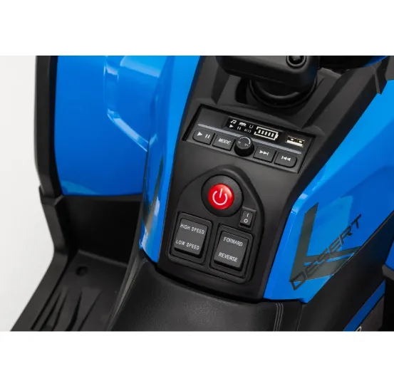 Детский электрический квадроцикл с пультом управления для родителей, музыкой и подсветкой, внедорожный дизайн, синий (586305)
