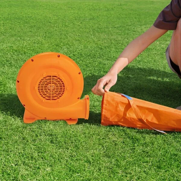 В комплекте: батут, компрессор, сумка для хранения, 8 стоек для батута.