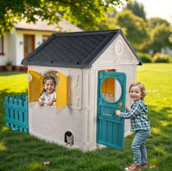 Игровой домик «Мой первый дом» предназначен для того, чтобы предоставить детям пространство для свободной игры и развития воображения. Реалистичный дизайн, дополненный дверями, окнами и ограждением, создает идеальную среду для ролевых игр, общения и активных развлечений.