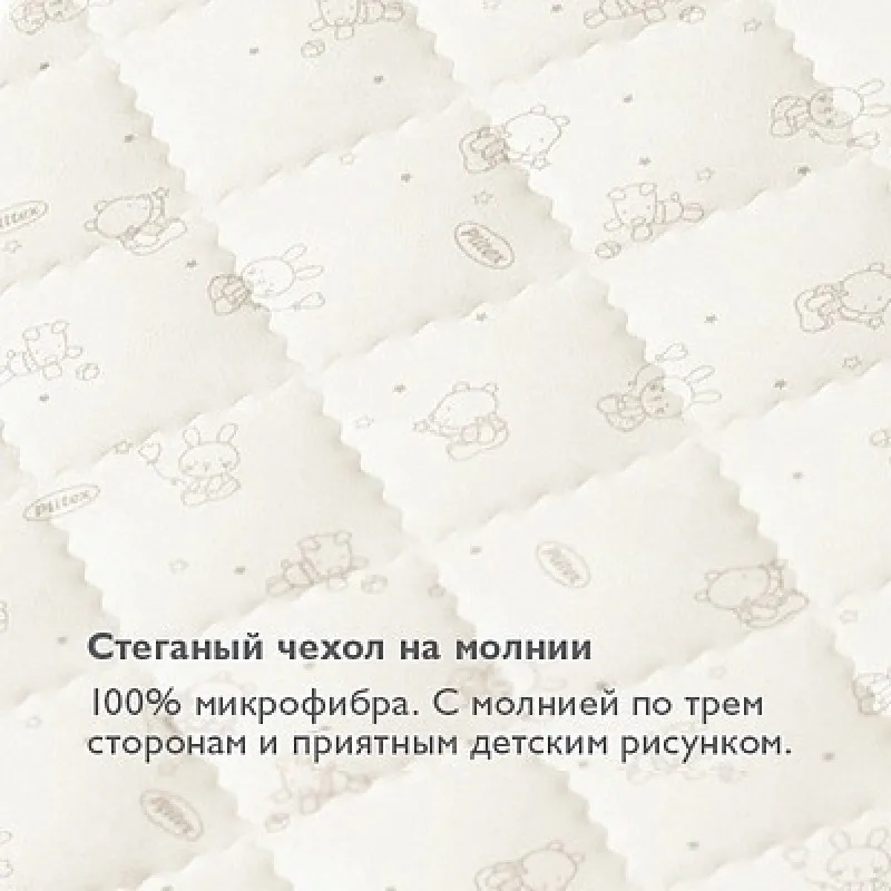 Стеганый съемный чехол из микрофибры упрощает уход за матрасом и дарит дополнительный комфорт. Модель рекомендуется детям от 0 до 5 лет.