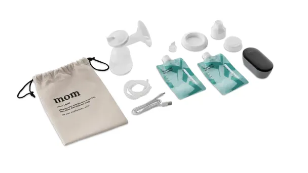 Упаковка содержит ряд функциональных принадлежностей, облегчающих использование молокоотсоса и хранение сцеженного молока. В комплект входят: бутылочка для молока (150 мл) с соской, 2 контейнера для хранения, хлопковый мешочек для молокоотсоса, универсальная воронка, крышка для воронки и USB-кабель.