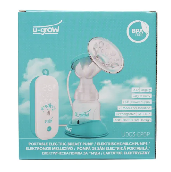 Портативный электрический молокоотсос U-Grow — это инновационное и эффективное устройство, идеально подходящее для мам, которые хотят стимулировать лактацию и сцеживать молоко комфортно и удобно.