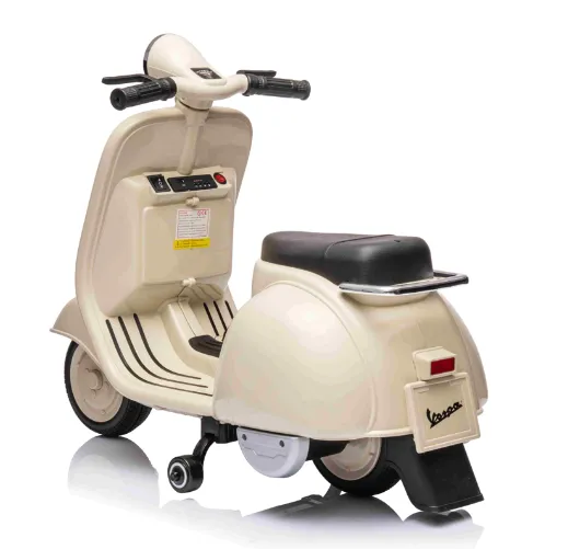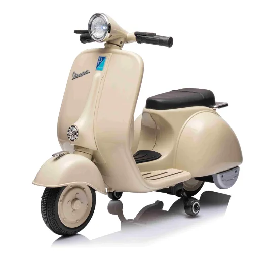 Детский электрический велосипед VESPA 150 VL1T 12 В (модель A8821) — это стильный и безопасный электрический мотоцикл для детей, созданный по лицензии легендарного скутера Vespa 150 VL1T. Он обеспечивает реалистичный опыт вождения, сочетая классический дизайн с современной функциональностью.