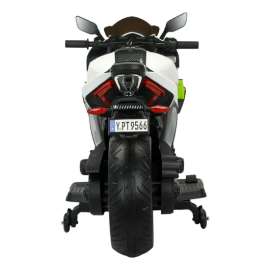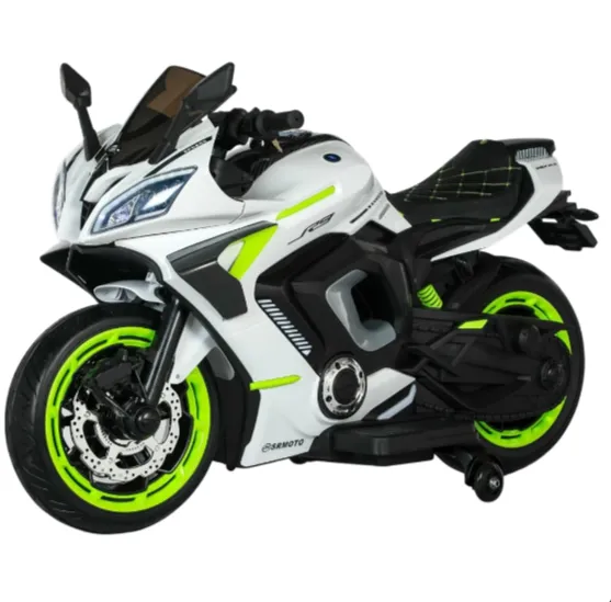 Мотоцикл оснащен двумя двигателями и 12-вольтовой батареей емкостью 7 Ач, обеспечивающей стабильную работу и плавное движение. Управление осуществляется с помощью акселератора на руле, что позволяет ребенку легко и естественно управлять мотоциклом, как настоящим.