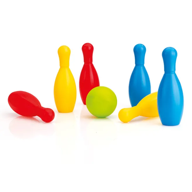 Замечательный набор для игры в боулинг можно использовать как на природе, так и в помещении. Игра порадует не только детей, но и взрослых. Яркие атрибуты для игры выполнены из качественного и легкого пластика, их можно взять с собой на пикник, чтобы потом поиграть вместе с детьми.