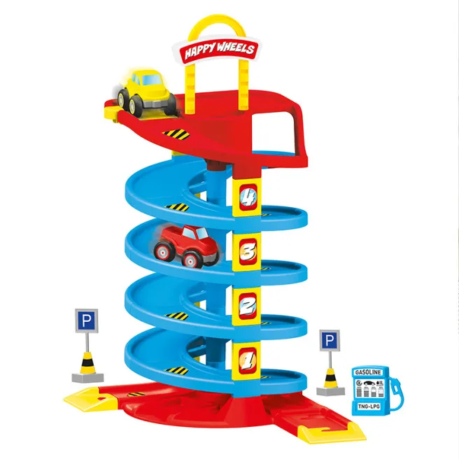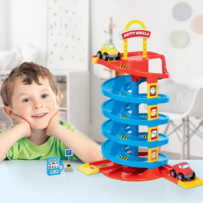 Замечательная игрушка непременно понравится Вашему малышу. Яркий разноцветный трек легко собирается и представляет собой спиралевидный спуск для легковых машинок в комплекте. Для того чтобы дети могли расширить возможности игры в комплекте поставляется дорожные знаки, арка и автозаправочная станция.