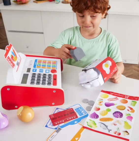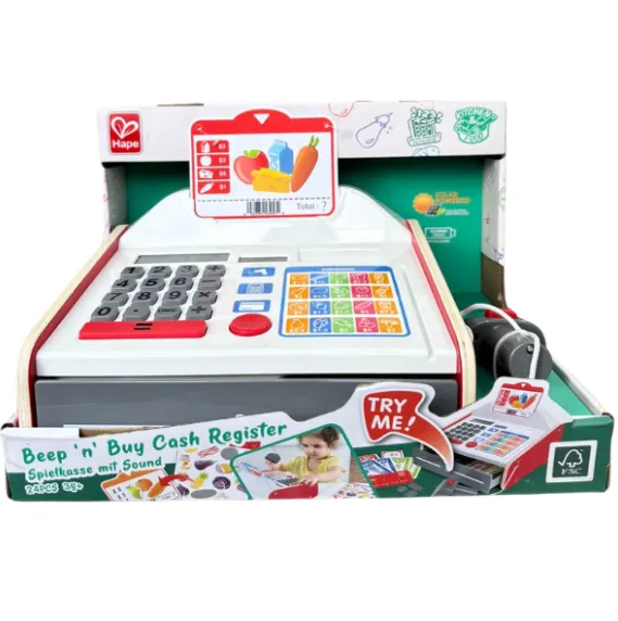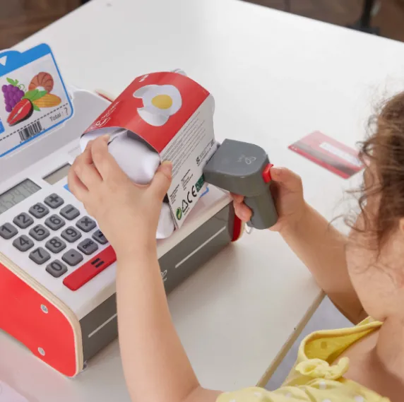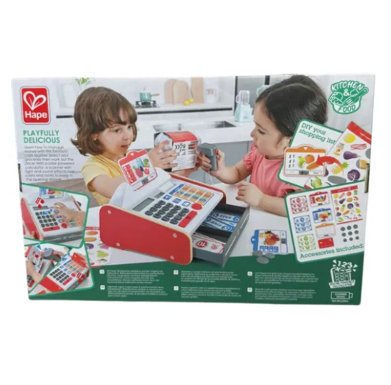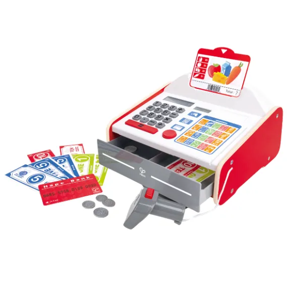 Научитесь управлять деньгами с этим фантастическим кассовым аппаратом! Выбирайте продукты, а затем рассчитывайте их стоимость! В наборе есть калькулятор с солнечной батареей, сканер с эффектами света и звука, а также монеты и банкноты для хранения в ящике.