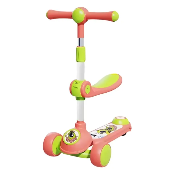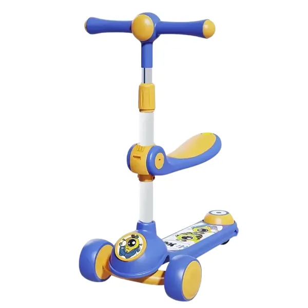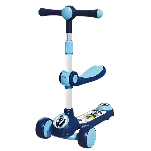 Детский трехколесный самокат со светящимися колесами, музыкой и сиденьем, 4 цвета