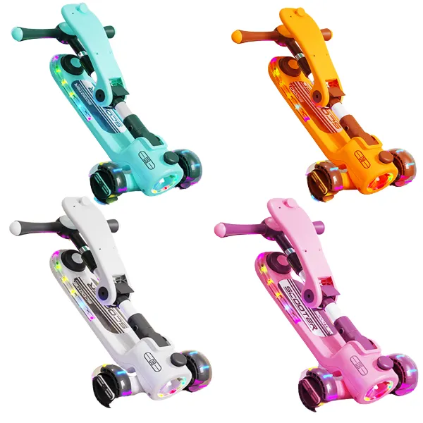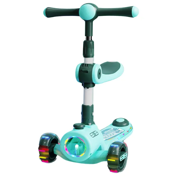 Складной трехколесный самокат со светящимися колесами, музыкой и сиденьем, 4 цвета