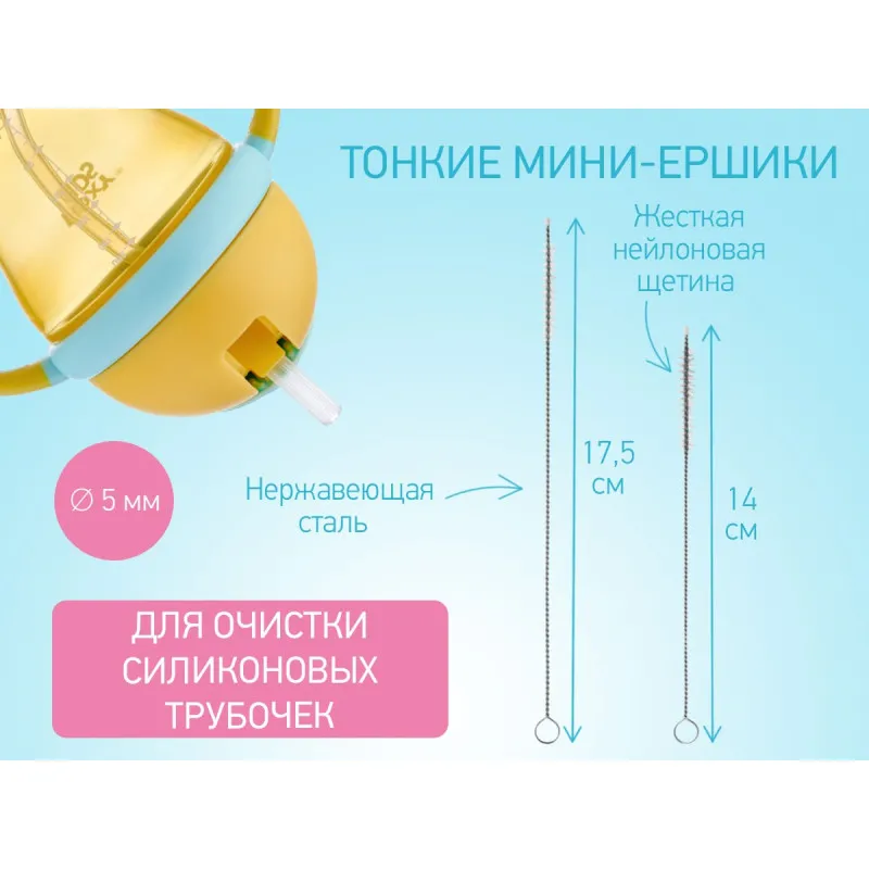 Мини-ершик – незаменимый инструмент для очистки силиконовых трубочек от остатков напитков.