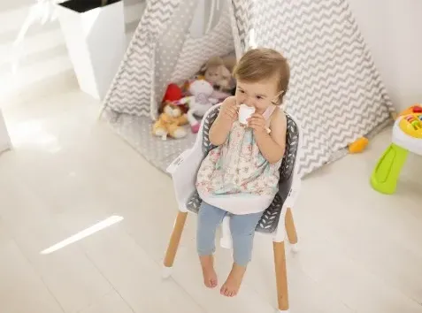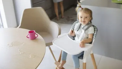 Благодаря регулируемым 5-точечным ремням с защитой бедер ребенок надежно защищен от выпадения и сохраняет удобное положение во время еды. Стульчик прошел тщательную проверку и испытания в независимой сертификационной лаборатории Intertek. Koen соответствует требованиям европейского стандарта безопасности — EN 14988.