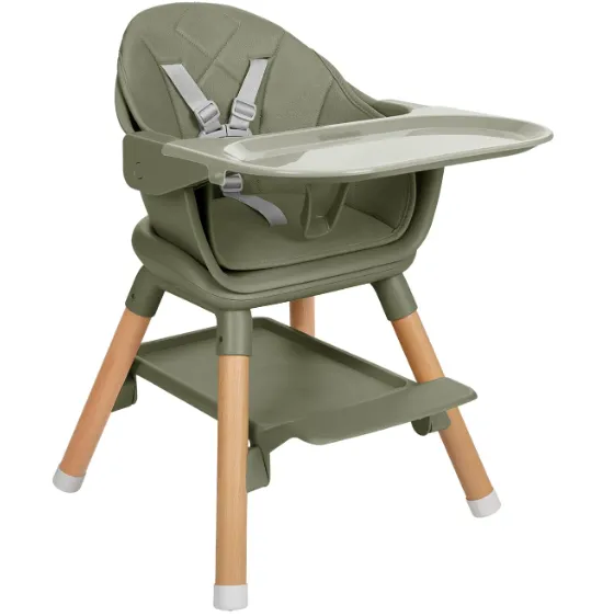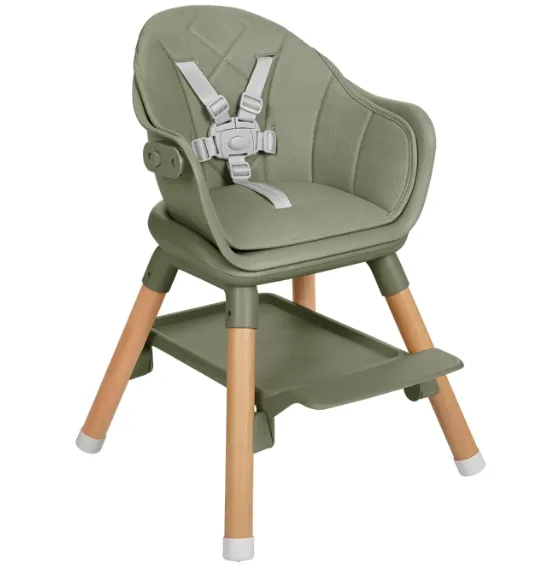Безопасность и комфорт – Оснащен системой ремней безопасности с 5-точечным креплением, противоскользящими ножками и подставкой для ног, обеспечивая максимальную безопасность и поддержку во время приема пищи.