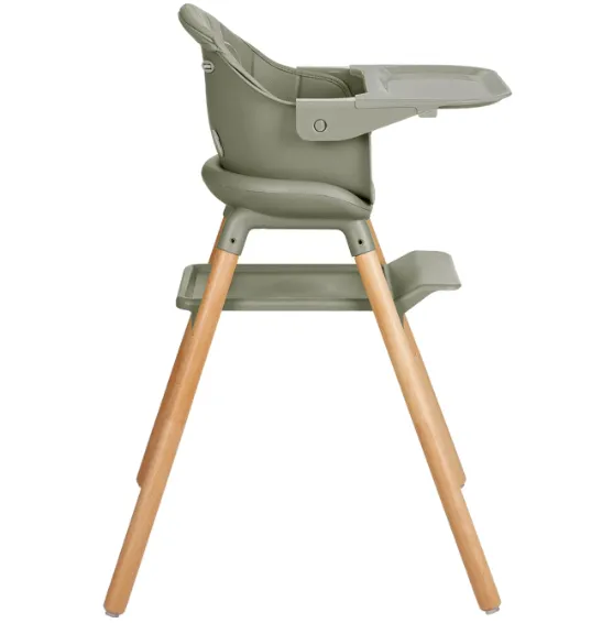 Практичный дизайн – Двойной съемный поднос для удобного кормления и роскошное кожаное сиденье для дополнительного комфорта и легкости в уходе.