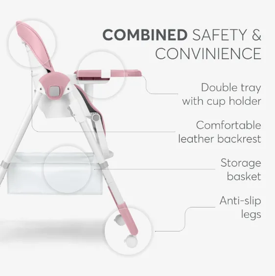 • Премиальный дизайн: мягкое сиденье из экокожи легко очищается и обеспечивает комфорт во время еды; компактное складывание упрощает хранение.