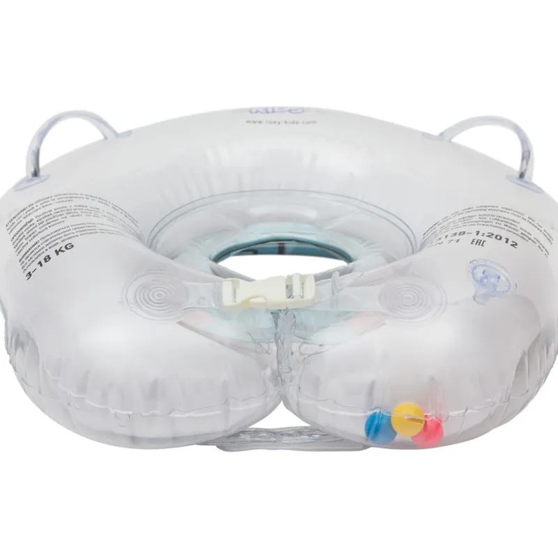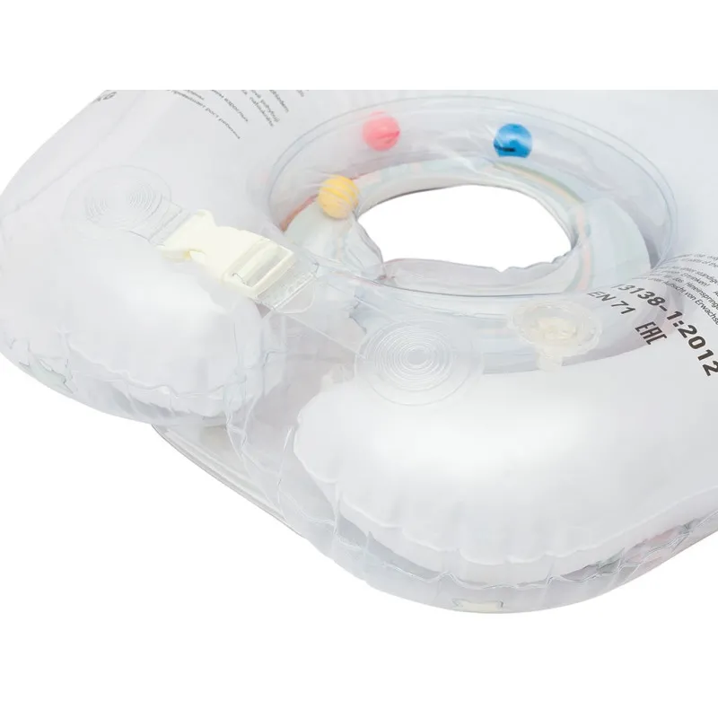 Accesoriul gonflabil pentru gatul bebelusului este realizat din polimer modern sigur si are, de asemenea, doua camere de aer, in interiorul carora se afla mingi de zornaie pentru o experienta de baie mai incitanta pentru bebelus.