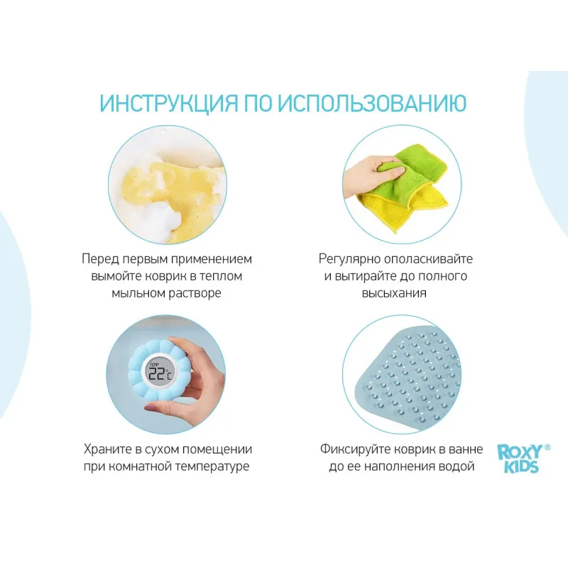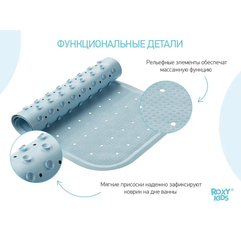 Suprafața covorașului are elemente de relief care asigură funcții de masaj, datorită cărora îmbăierea copilului va deveni nu numai simplă și sigură, ci și utilă.