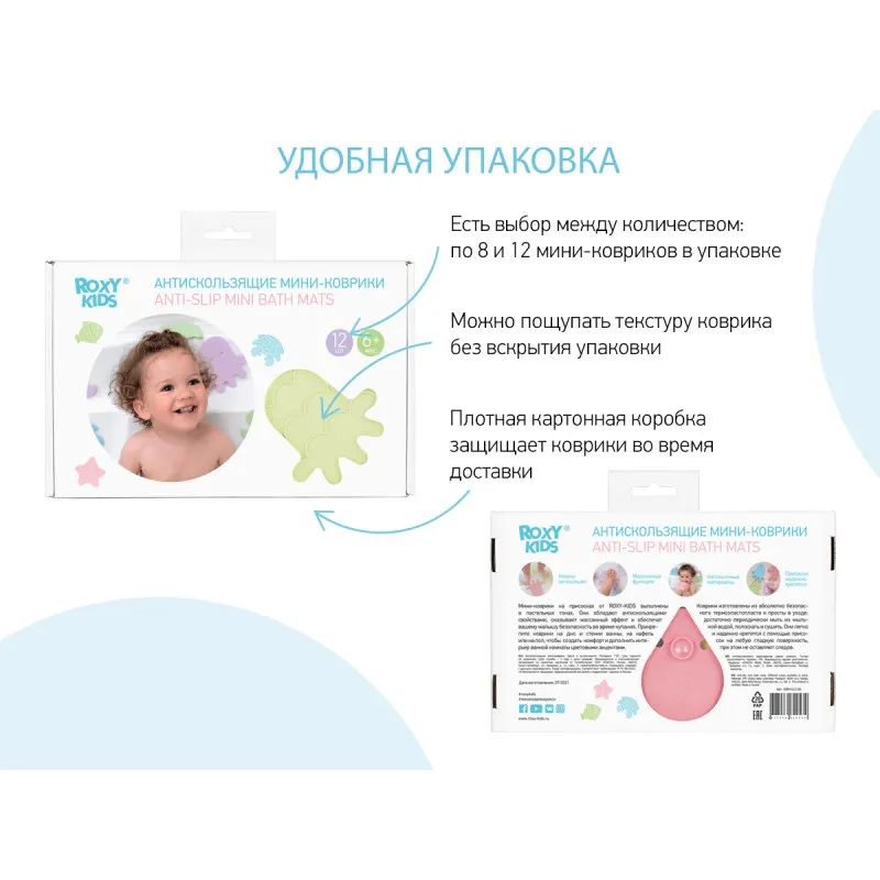 Covorașele de baie mini SEA ANIMALS de la ROXY-KIDS sunt fabricate în Rusia din material TPR modern și sigur.
